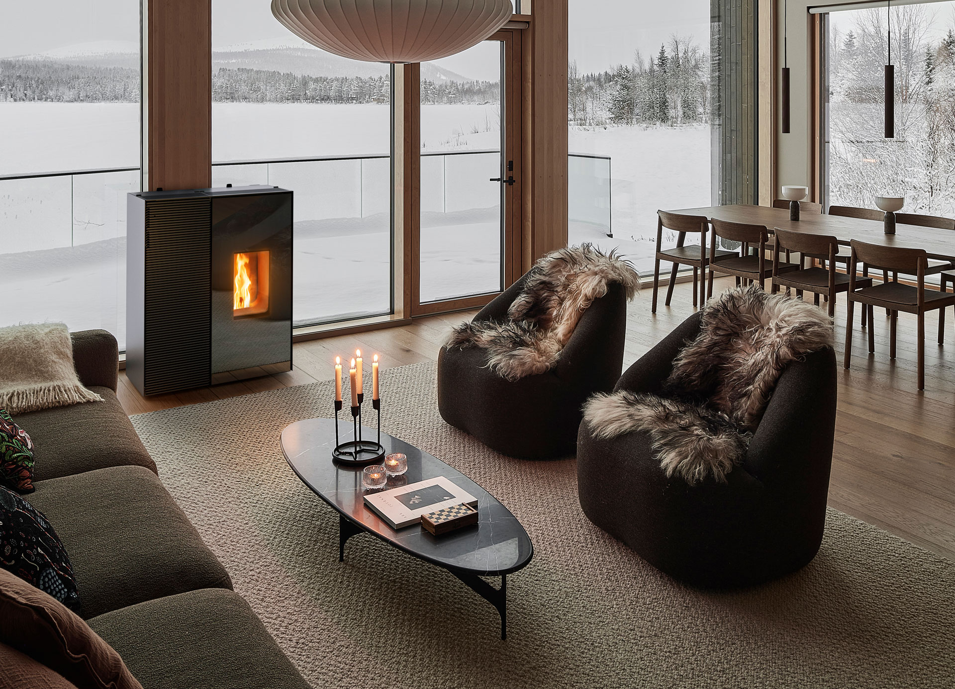 EIKO 365 è la prima stufa a pellet che offre sia riscaldamento che raffrescamento in un unico prodotto, senza necessitare di unità esterna né scarico della condensa. Si installa facilmente con un solo foro a muro, ottimizzando spazio ed energia. Questa soluzione innovativa consente di godere di freschezza in estate e di calore in inverno, senza ingombri aggiuntivi. Per il riscaldamento, EIKO 365 sfrutta la Tecnologia Core®, che garantisce una combustione pulita ed efficiente. Una fiamma naturale, ampia e unica, con emissioni ridotte del 40% rispetto ai limiti europei più severi e un risparmio sui consumi di pellet fino al 15%. Con Maestro+, la gestione è semplice e intuitiva: grazie al pannello a scomparsa e all’app, è possibile regolare la temperatura, programmare accensioni e monitorare il funzionamento della stufa via WiFi o Bluetooth, ottimizzando i consumi e personalizzando il comfort in ogni stagione. EIKO 365 è la soluzione ideale per un comfort termico completo, sostenibile e versatile, tutto l’anno.